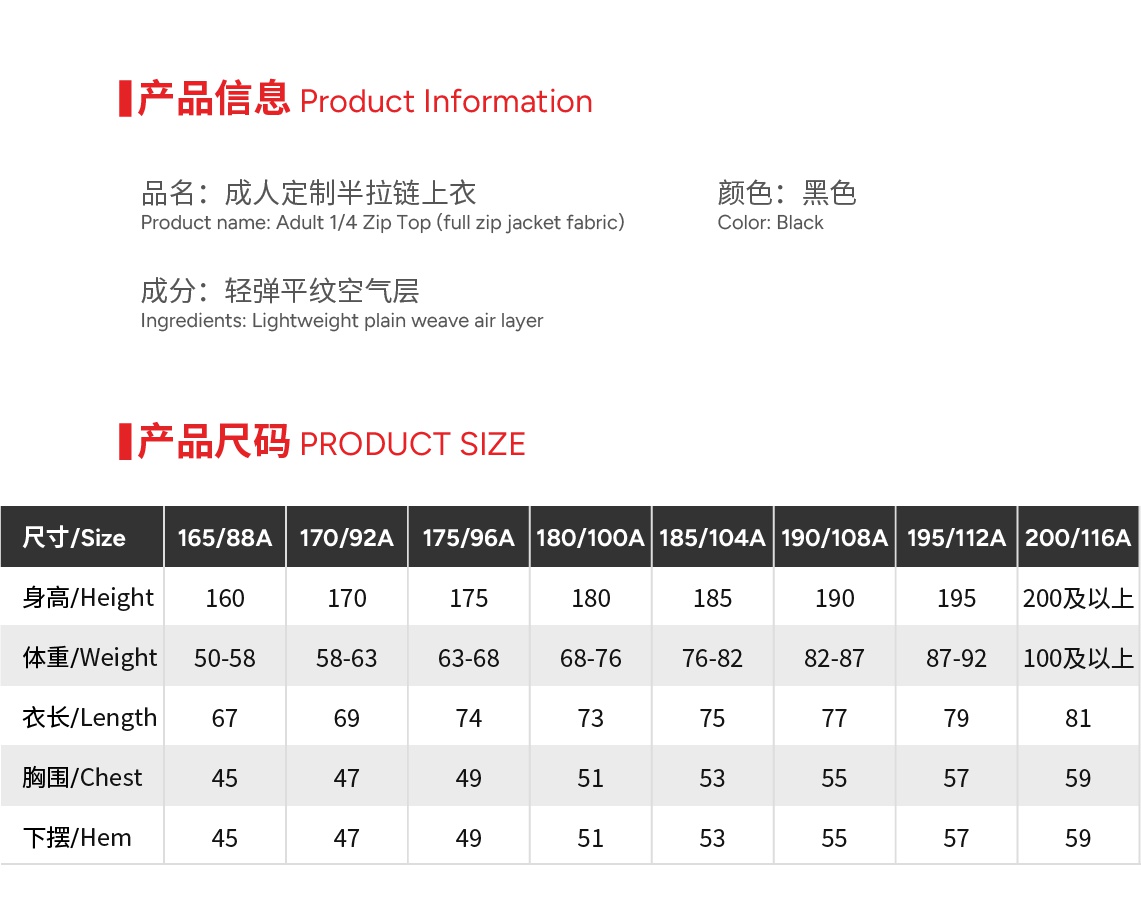 Adult 1/4 Zip Top (full zip jacket fabric)