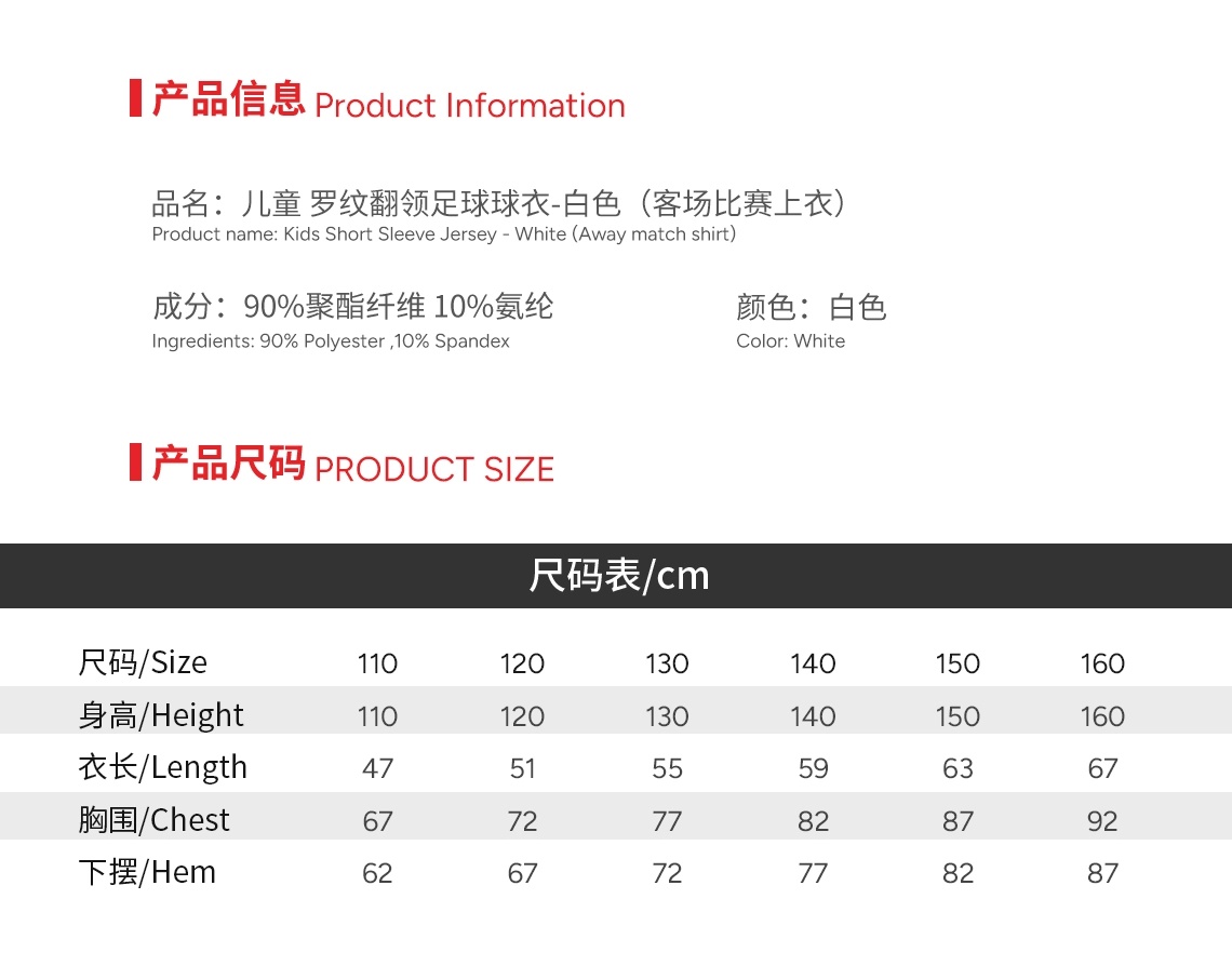 Kids Short Sleeve Jersey - White (Away match shirt)