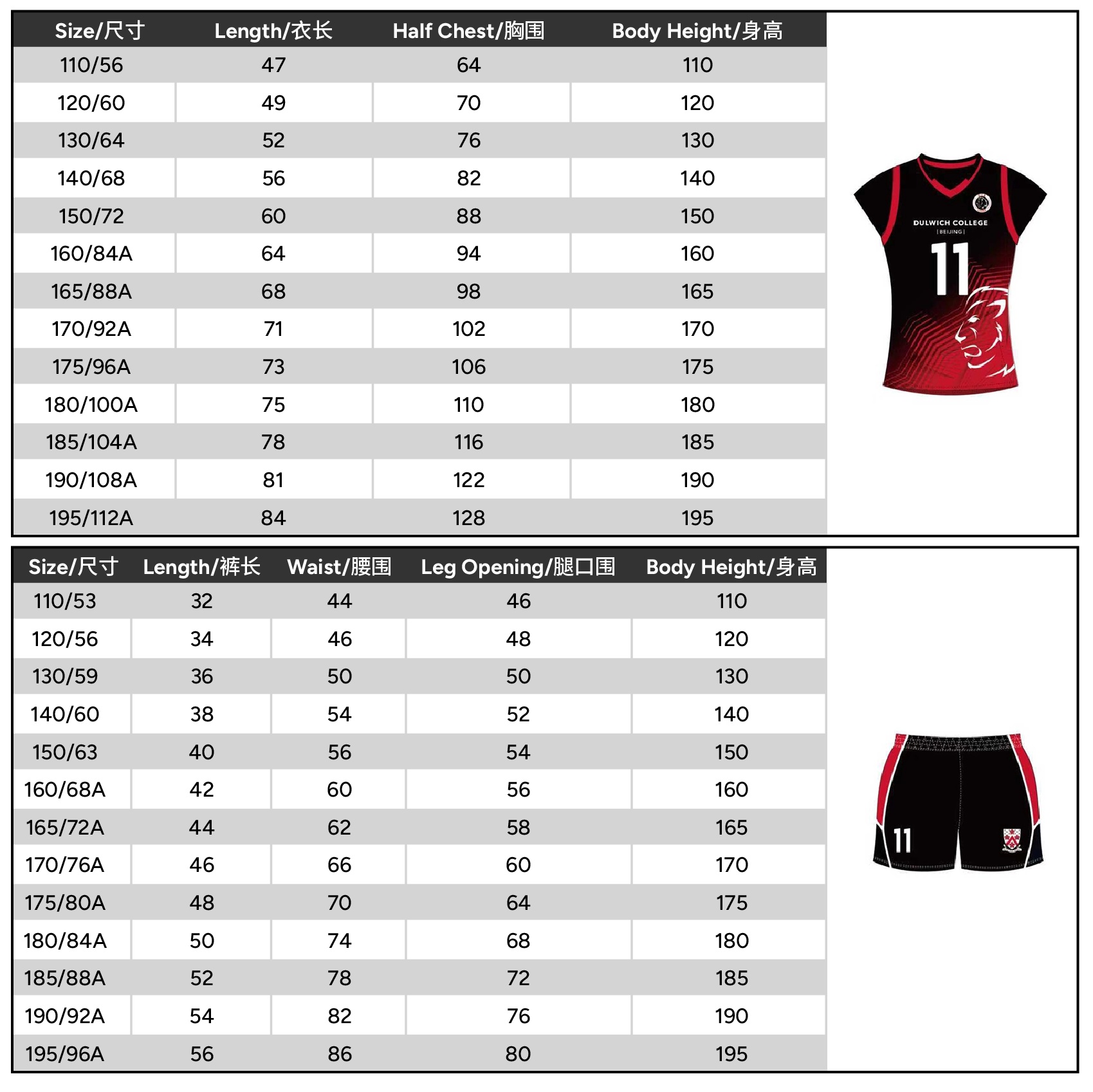 Size 110 or 120 or 130 or 140 or 150 or 160 or 165 or 170 or 175 or 180 or 185 or 190 or 195