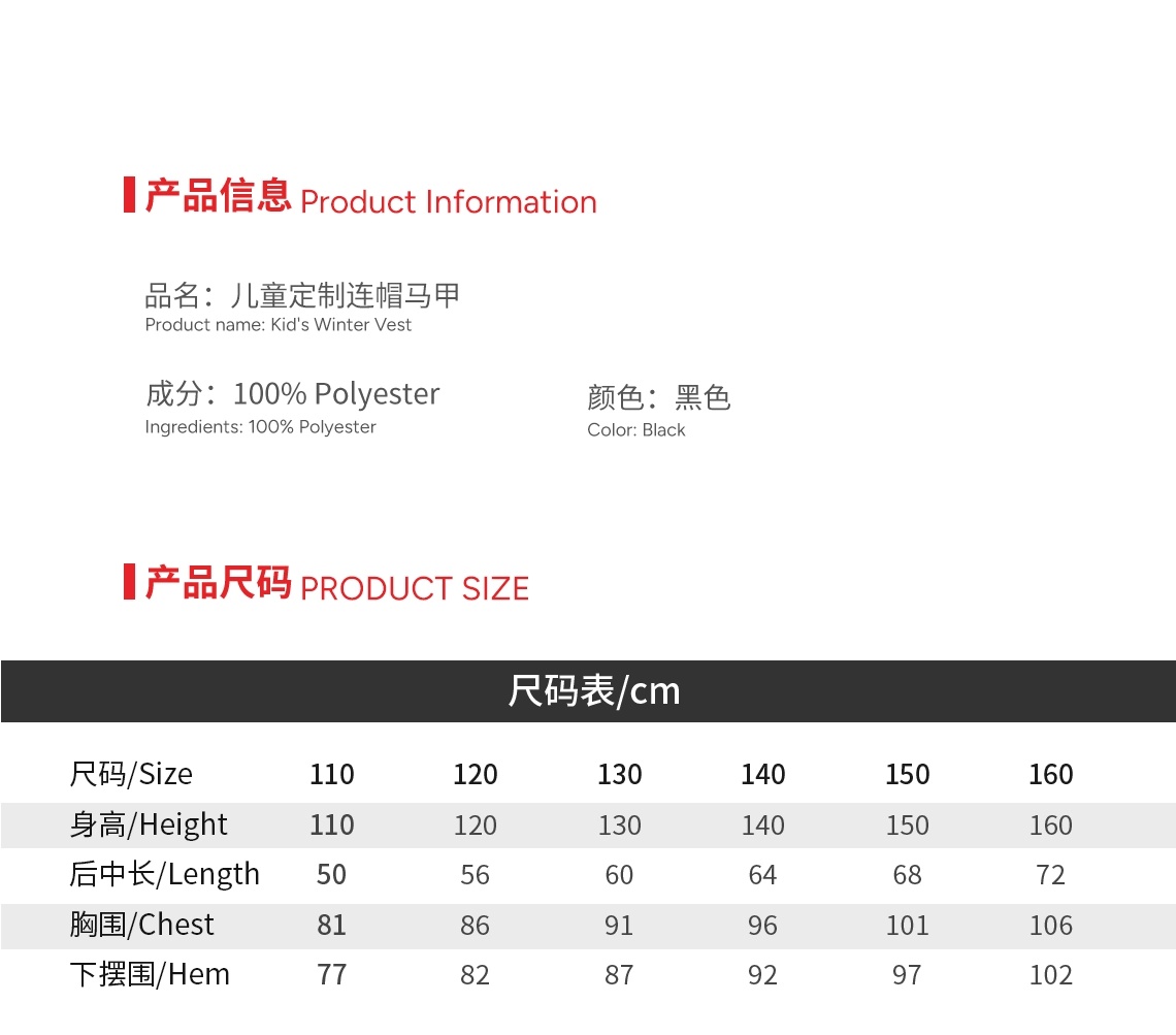 儿童定制连帽马甲