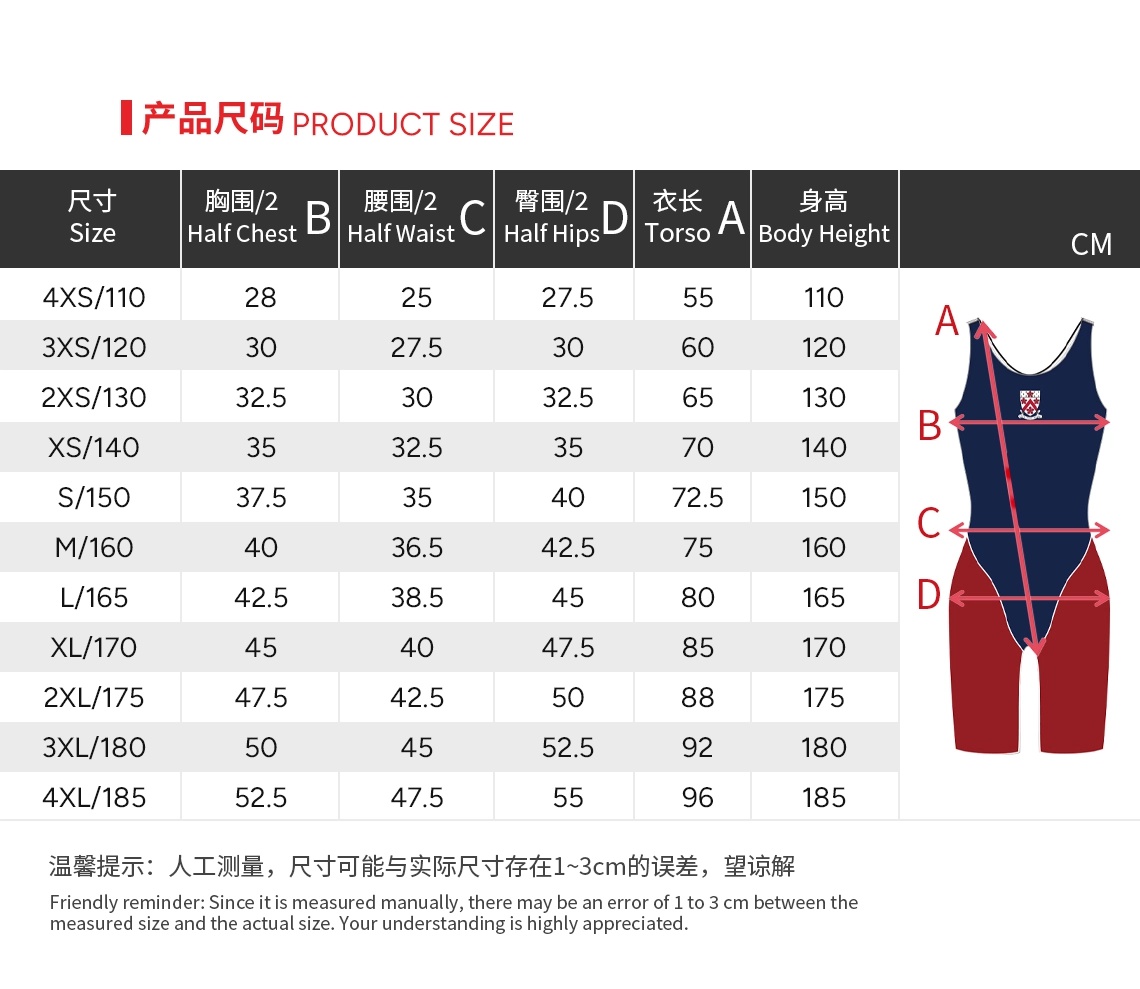 | 尺码 | 4XS/110 or 3XS/120 or 2XS/130 or XS/140 or S/150 or M/160 or L/165 or XL/170 or 2XL/175 or 3XL/180 or 4XL/185 |