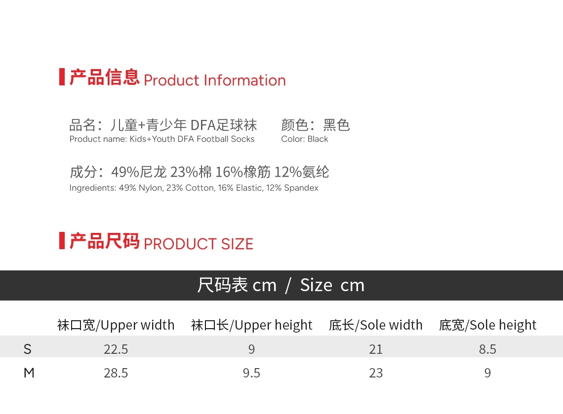 儿童+青少年 DFA足球袜